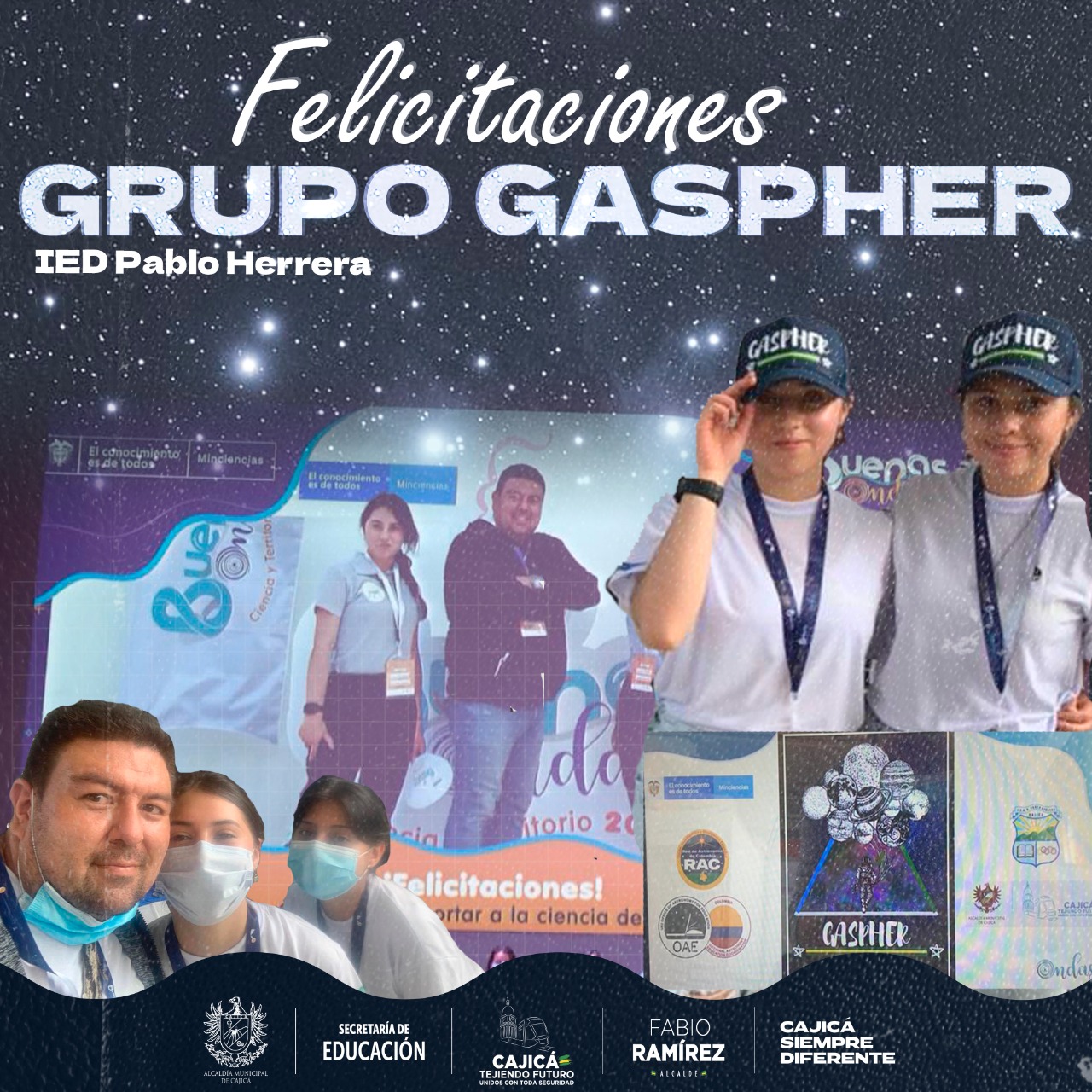 El alcalde de Cajicá Fabio Ramírez y la Secretaría de educación felicitan al grupo GASPHER de la IED Pablo Herrera, por su participación en el concurso regional ONDAS, representado a Cundinamarca como uno de los mejores proyectos tecnológicos a nivel municipal, departamental y nacional.