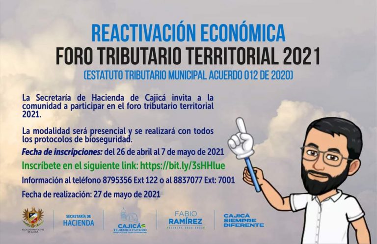La Secretaría de Hacienda de Cajicá invita a participar en el Foro Tributario Territorial 2021, contaremos con el acompañamiento de la Dian y la cámara de comercio para realizar trámites.