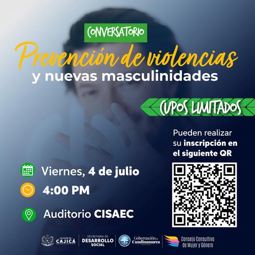La Gobernación de Cundinamarca y el Consejo Consultivo de Mujeres invitan al conversatorio sobre nuevas masculinidades y prevención de la violencia, un espacio para reflexionar, aprender y transformar desde el respeto y la equidad.