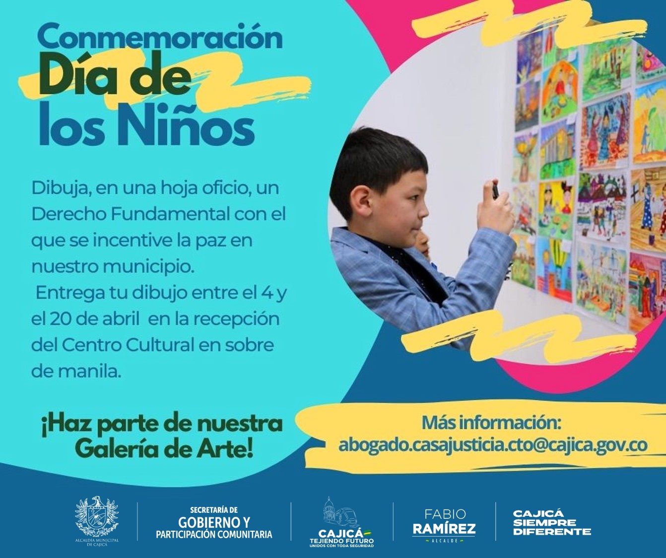 #DíadelosNiños ll ¿Has soñado con ser parte de una exposición de arte? Si eres un niño o una niña que habita en el municipio de Cajicá te invitamos a hacer parte de la Galería de Arte, la cual estará abierta al público durante la conmemoración del Día de los Niños.