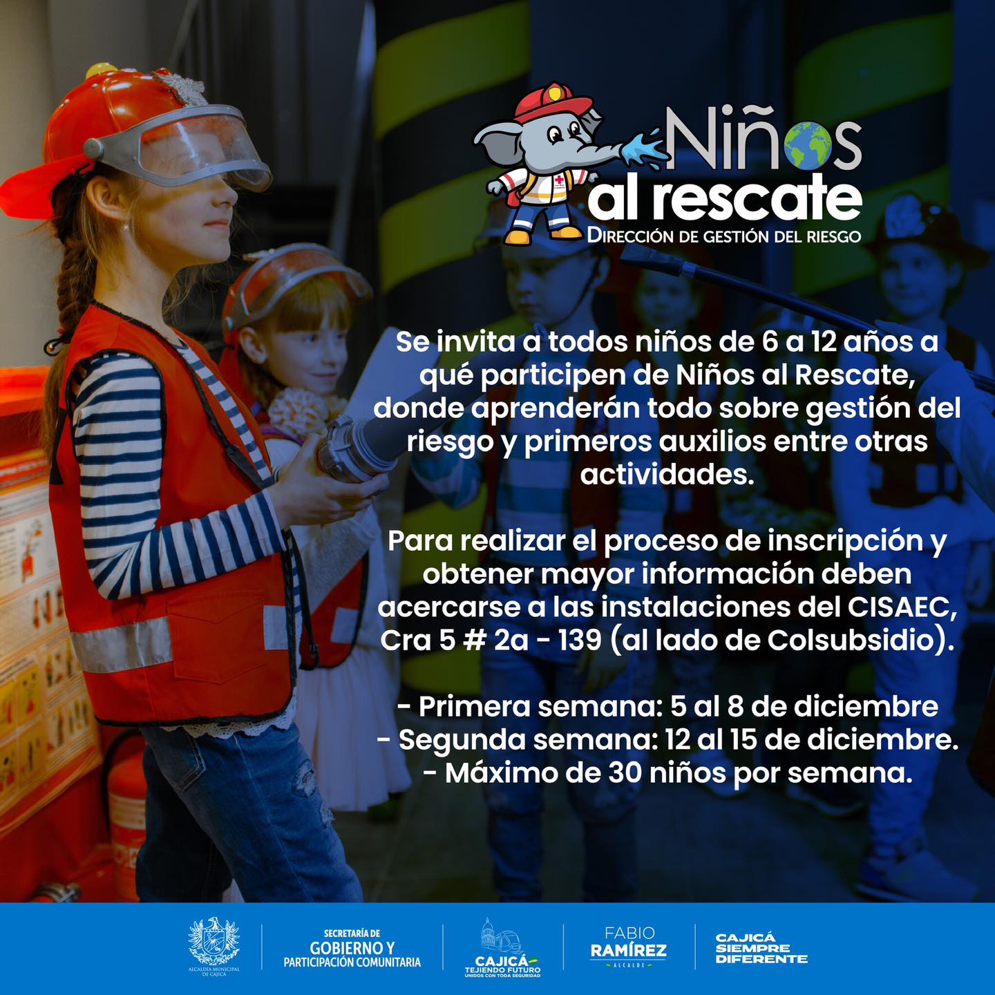 👦🏽 👧🏻 #NiñosAlRescate || La Secretaría de Gobierno y Participación Comunitaria junto con la Dirección de Gestión del Riesgo, invitan a todos los niños y niñas de 6 a 12 años a participar del programa “Niños al Rescate”, para inscribirte puedes acercarte a las instalaciones del CISAEC en la Cra 5 # 2a-139.