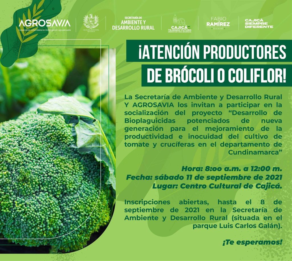 🥦 #Socialización || La Secretaría de Ambiente y Desarrollo Rural y Agrosavia, invitan a los productores de brócoli o coliflor a conocer el proyecto para la productividad del cultivo.