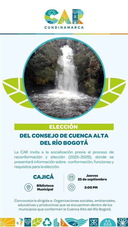La Comisión Conjunta de la Cuenca Alta del Río Bogotá (CAR, Corpoguavio y Corporinoquia) invita a ser parte del Consejo de Cuenca Alta del Río Bogotá.