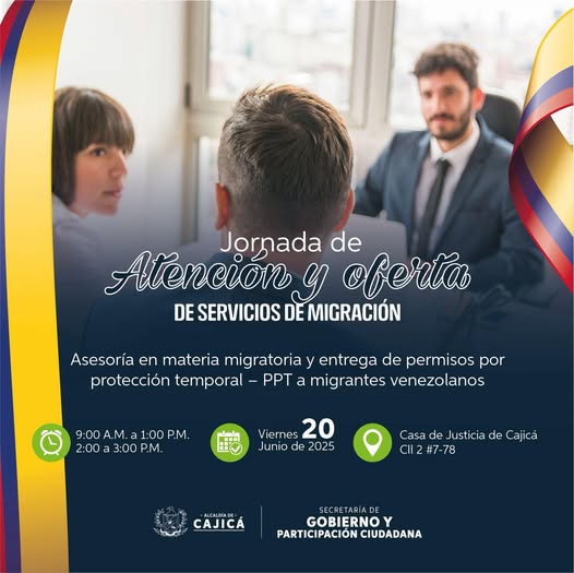 La Secretaría de Gobierno y Participación Ciudadana invita a toda la comunidad, especialmente a la población migrante, a participar en la Jornada de Atención y Oferta de Servicios de Migración Colombia.