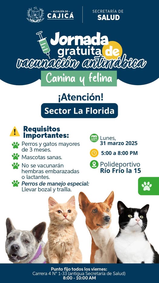 Además, recuerda que todos los viernes contamos con un punto fijo de vacunación gratuita en la antigua Secretaría de Salud (Carrera 4 N° 1-33) de 8:00 a.m. a 10:00 a.m.