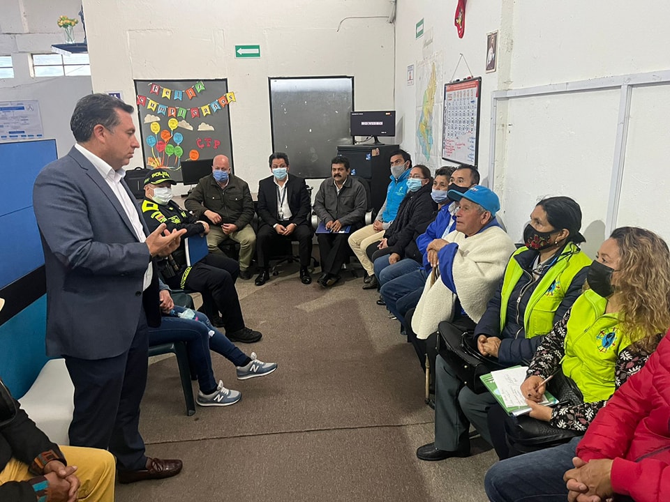 El alcalde Fabio Ramírez en compañía de los secretarios de Gobierno y Participación Comunitaria, Infraestructura y Obras Públicas, Transporte y Movilidad, el Gerente de la Empresa de Servicios Públicos de Cajicá, el Mayor Omar Acosta de la Policía Nacional y dignatarios de Juntas de Acción Comunal y comunidad del Sector Puente Vargas, se reunieron con el fin de dar cumplimento a compromisos concertados en anteriores reuniones como lo son: Mejoramiento Vía Cajicá – Sopó e Intervenciones en el parque del sector en cuanto a seguridad por parte de la Policía Nacional.