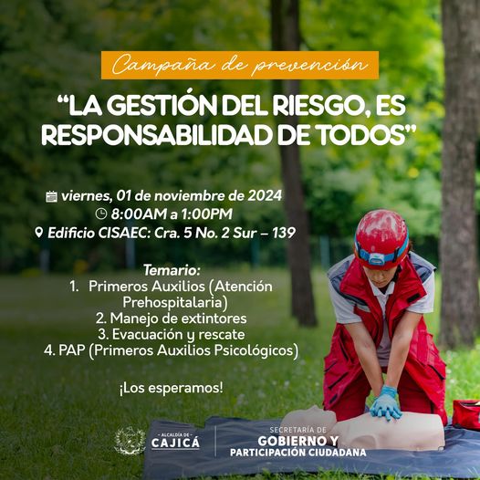 La Secretaría de Gobierno y Participación Ciudadana y la Dirección de Gestión del Riesgo invitan al curso: