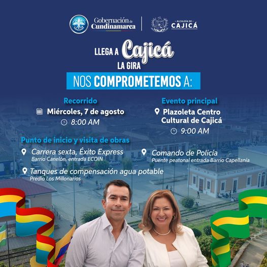 Acompañemos el recorrido de obras y evento principal donde estarán nuestra alcaldesa, Fabiola Jácome Rincón y el gobernador, Jorge Rey.
