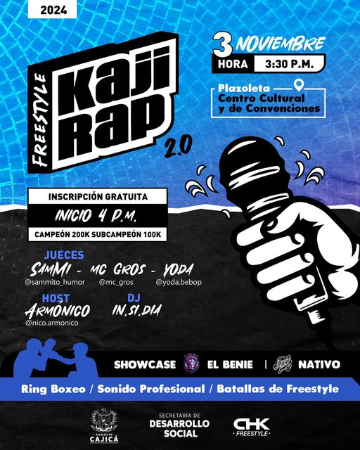 En este gran espacio, las expresiones culturales del hip-hop, batallas de freestyle y breakdance serán los protagonistas en la improvisación, para los amantes del rap. Recuerde realizar su inscripción para participar el día del evento.