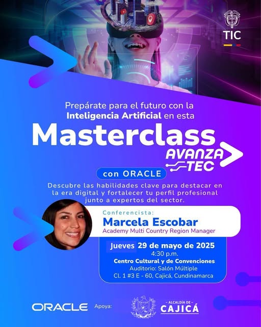 El Ministerio TIC y Oracle te invitan a una Masterclass presencial de AvanzaTEC donde aprenderás sobre habilidades clave para destacar en la era de la IA, junto a una experta del sector.