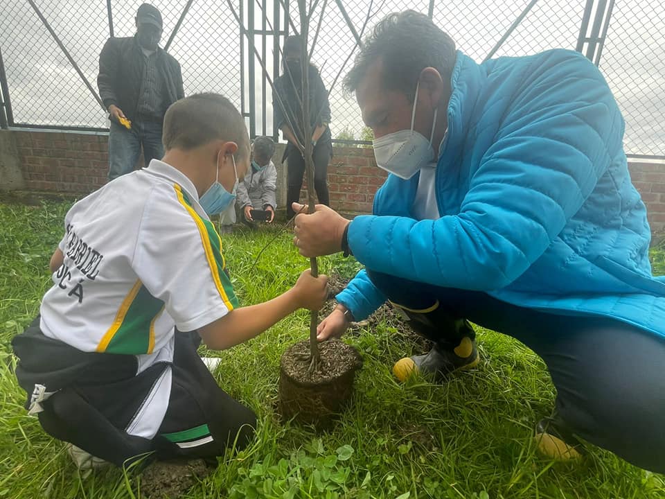 #Reforestación Nos encontramos en la Institución Educativa San Gabriel, en compañía de la Secretaría de Ambiente y Desarrollo Rural realizando una actividad de reforestación con los estudiantes del grado primero. La cual está enmarcada en la jornada de siembra convocada por la Red de Alcaldes y Ciudades Sostenibles para la Democracia.