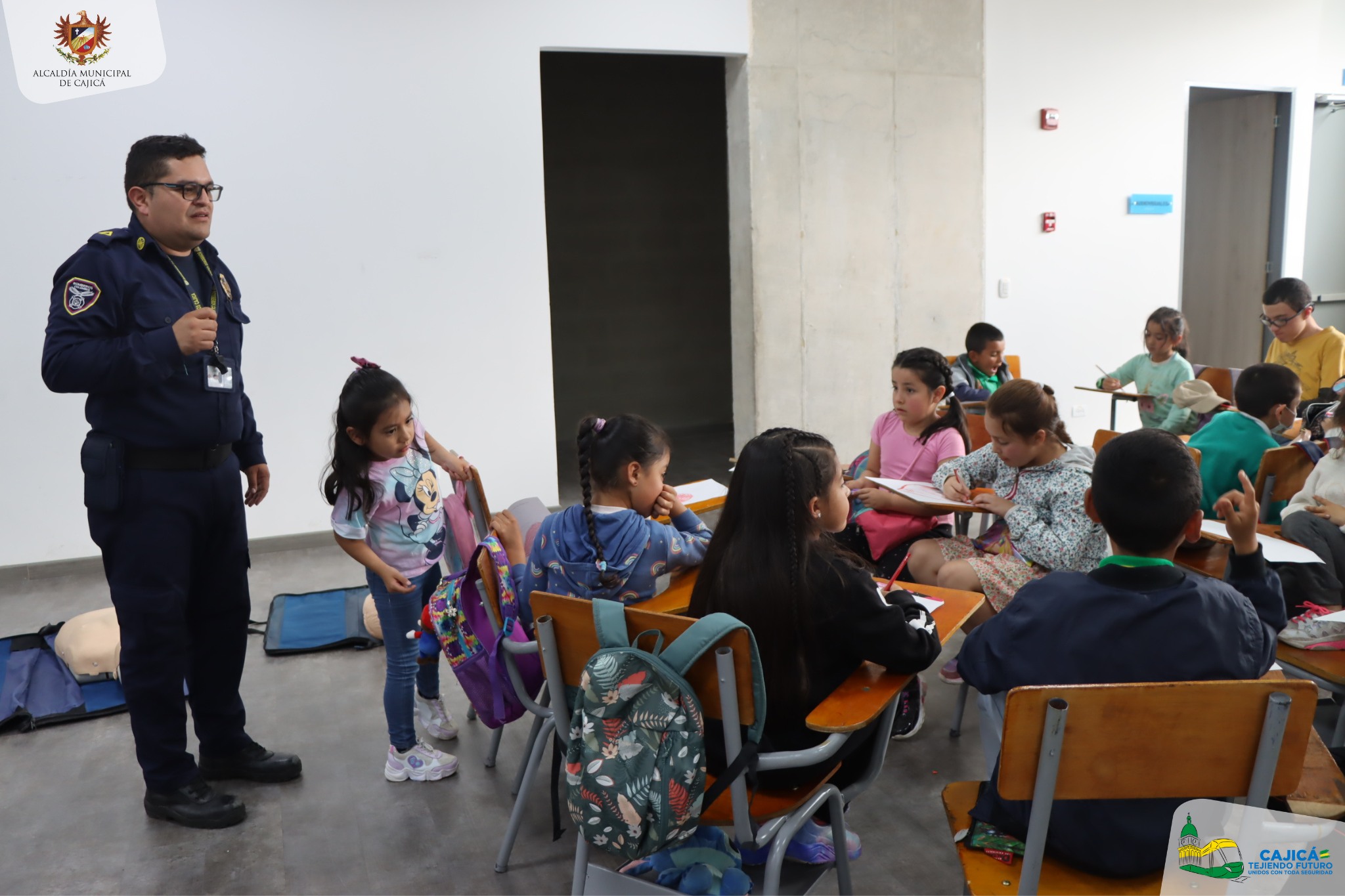 #NiñosAlRescate || La Dirección de Gestión del Riesgo y el Cuerpo Oficial de Bomberos de Cajicá, llevaron a cabo la segunda semana del programa Niños Al Rescate; con el objetivo de enseñarles a los niños y niñas conocimientos acerca de Gestión del Riesgo, clases del fuego, normas básicas de prevención de incendios y primero auxilios.