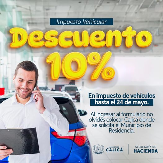 La Secretaría de Hacienda informa que, hasta el próximo viernes 24 de mayo, los ciudadanos podrán aprovechar el descuento del 10% en el Impuesto de Vehículos de Cundinamarca.