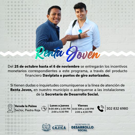 Los jóvenes beneficiarios del programa del departamento de Prosperidad Social ‘Renta Joven’ podrán realizar su retiro correspondiente en los puntos de giro autorizados y DaviPlata.