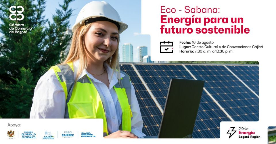 #Agéndate || La Secretaría de Desarrollo Económico de Cajicá y la Cámara de Comercio de Bogotá invitan a participar en Eco – Sabana: Energía para un Futuro Sostenible, un evento que busca promover la adopción de prácticas empresariales responsables y generar un impacto positivo en el entorno local, contribuyendo al desarrollo económico sostenible y dando el primer paso hacia la transición energética.