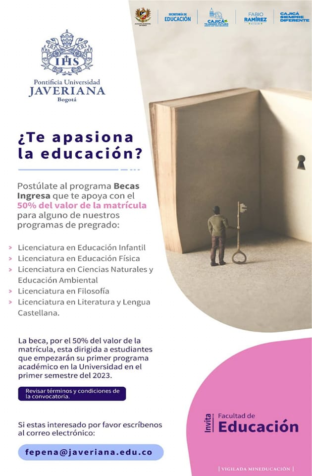#EducaciónSuperior || La Secretaría de Educación y La Universidad Javeriana en el marco de su Misión y Proyecto Educativo ha implementado diferentes modalidades de becas, con el fin de contribuir a la formación integral de profesionales que carecen de recursos económicos para asumir la totalidad de la matrícula.