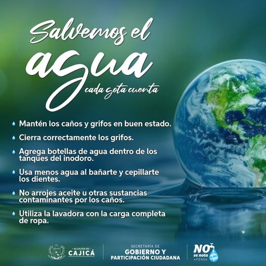 Ten en cuenta las siguientes recomendaciones para el cuidado del recurso vital en nuestras vidas.