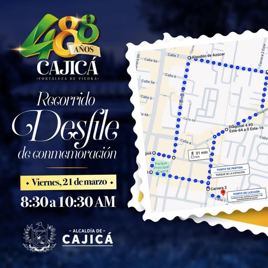 El viernes 21 de marzo de 2025, en el marco de la conmemoración de los 488 años de la Fortaleza de Piedra, se realizará el desfile inaugural que partirá desde el Parque La Estación y finalizará en la Plazoleta del Centro Cultural y de Convenciones de Cajicá.