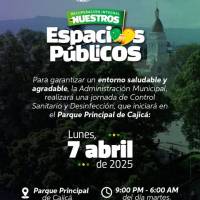 Este lunes 7 de abril, desde las 9:00 p. m. y hasta las 6:00 a. m. del jueves 10 de abril de 2025, se llevará a cabo una jornada de control sanitario y desinfección, iniciando en el Parque Principal.