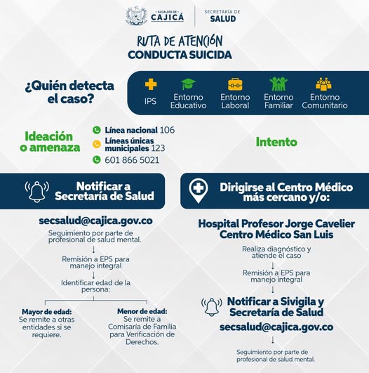 En Cajicá, todos podemos detectar señales de alerta en diferentes entornos: educativo, familiar, laboral, comunitario o en una IPS.