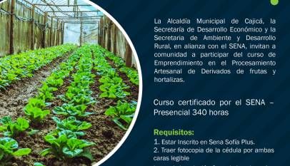 #CursoCertificado || ¿Quieres poner tu emprendimiento con derivados de frutas y hortalizas? La Administración Municipal de Cajicá te invita a participar…