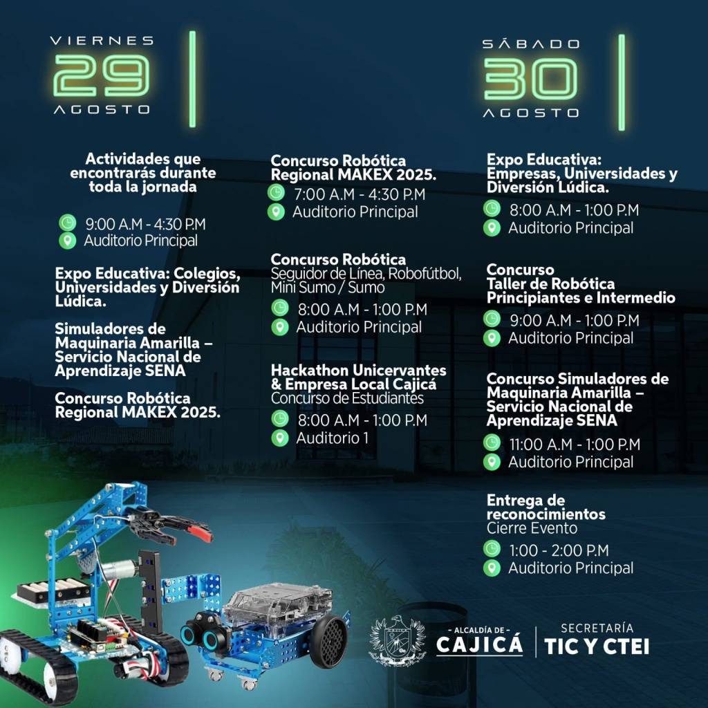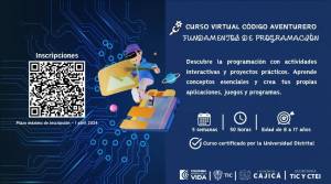 La Secretaría TIC CTEI te invita a sumergirte en el fascinante mundo de la tecnología con los cursos especialmente diseñados para ti, ¡y completamente GR ATIS! Si tienes entre 8 y 17 años y una curiosidad insaciable por aprender, estos cursos son tu pasaporte al futuro. 🔗 Inscríbete en el código QR de cada gráfica. #JuntosPorUnaCajicáIdeal |