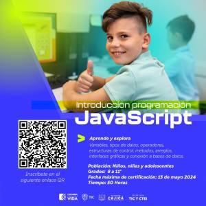👨🏽💻 #Capacítate || La Secretaría TIC CTEI invita a participar de los cursos en Javascript y Python para niños, niñas y adolescentes, completamente gratis. 🔗 Inscríbete en el código QR de cada gráfica. #JuntosPorUnaCajicáIdeal