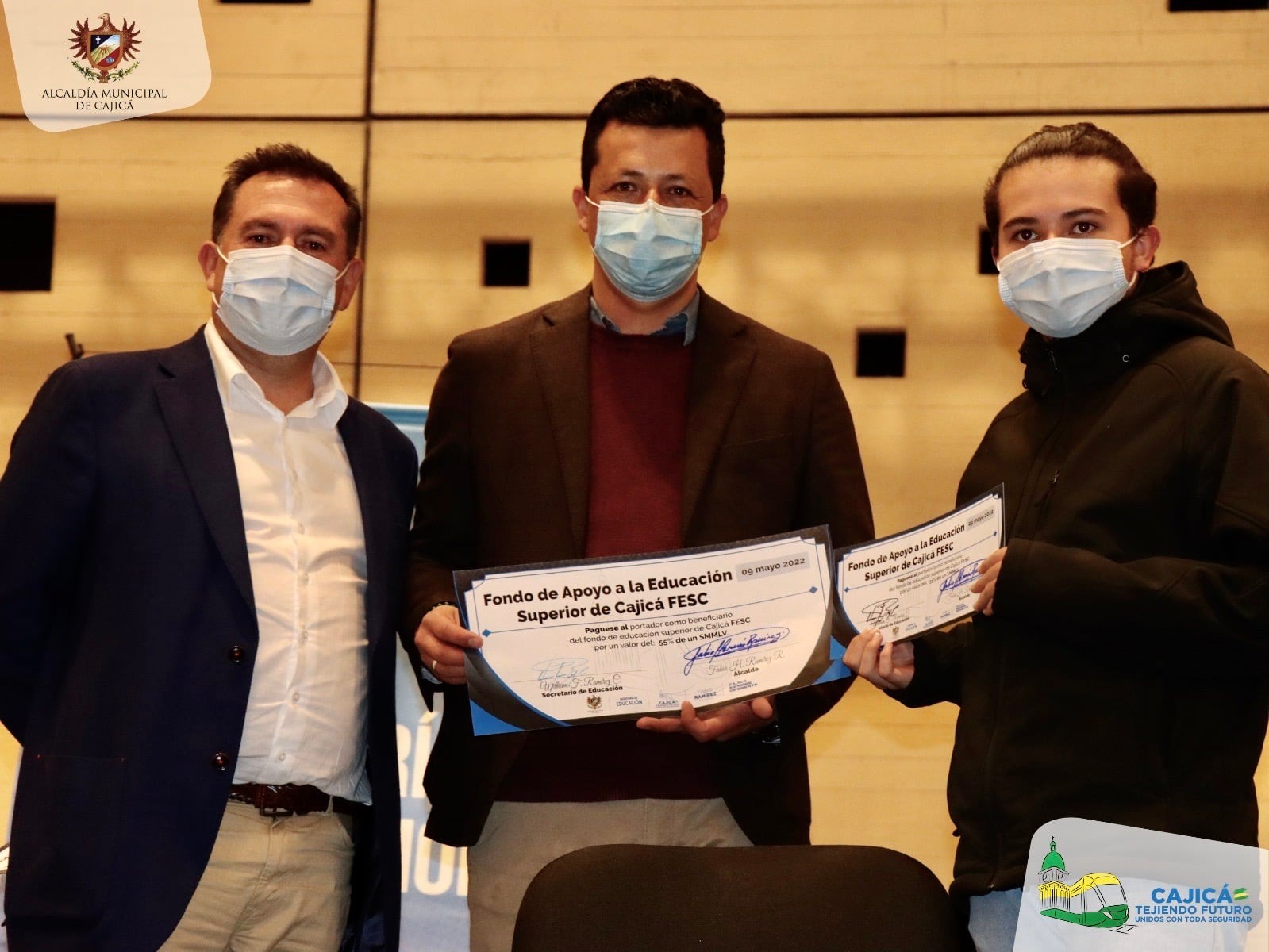 El alcalde Fabio Ramírez en conjunto con la Secretaría de Educación en cabeza del licenciado William Ramírez y la directora de Educación Continua, Alisson Bautista; realizaron la segunda entrega del Fondo de Apoyo a la Educación Superior de Cajicá FESC.