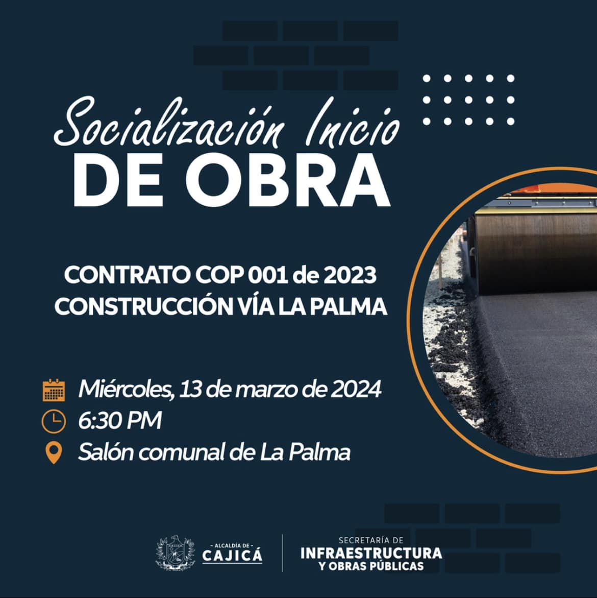 La Secretaría de Infraestructura y Obra Pública socializaré la Construcción vía La Palma, un proyecto que beneficiará a la comunidad, promoviendo la ágil movilidad y garantizando la seguridad de los actores viales.