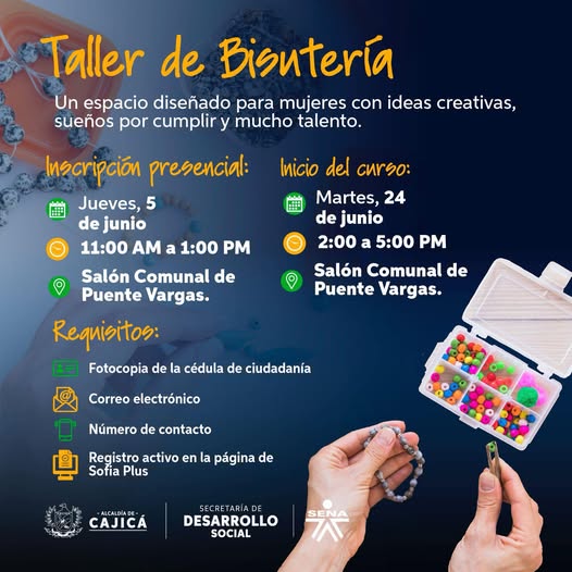 El Consejo Consultivo de Mujeres, en alianza con el SENA, invita a participar en un espacio creativo y productivo donde se aprenderán técnicas básicas de bisutería para crear accesorios propios.