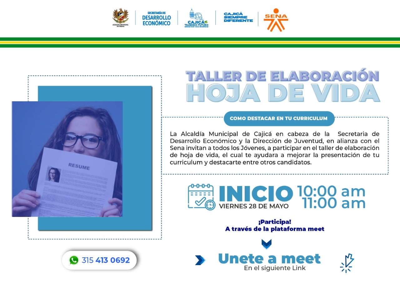 📄 #Capacítate || La Secretaría de Desarrollo Económico y la Dirección de juventudes invitan a participar en el taller virtual de elaboración de hoja de vida orientado por el SENA.