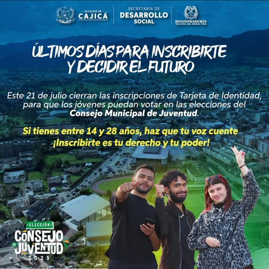 Si tienes entre 14 y 17 años y aún no has inscrito tu tarjeta de identidad, ¡hazlo ya! Solo así podrás participar en las elecciones del Consejo Municipal de Juventud.