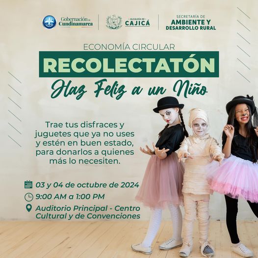 La Secretaría de Ambiente y Desarrollo Rural y la Gobernación de Cundinamarca te invitan a donar tus disfraces y juguetes usados en buen estado para niños de poblaciones vulnerables.